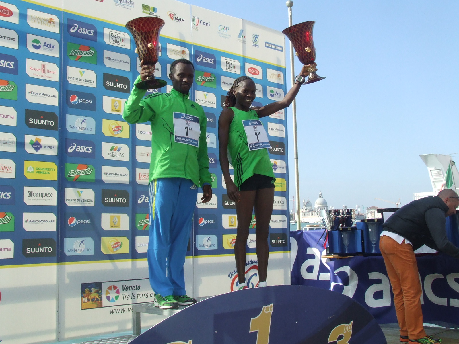 Today VeniceMarathon and this is the photo of the winners:ethiopian Aredo Tadese and Kenyan Helena Kirop.