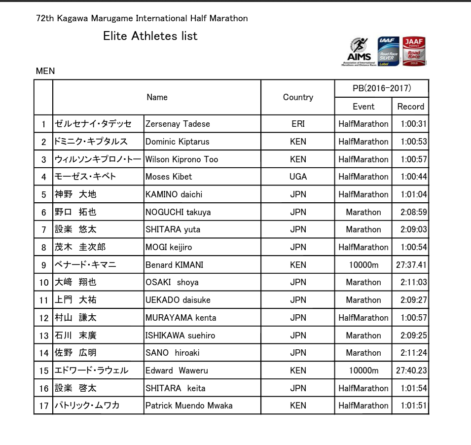 Karagawa Marugame International Half Marathon 2018 – 72nd edition