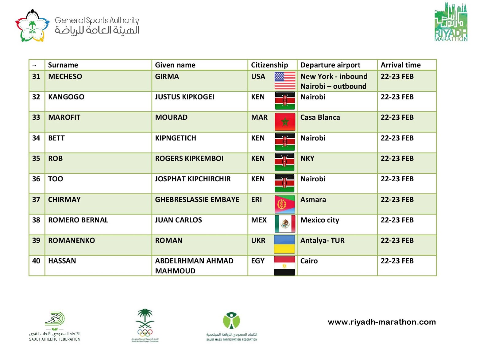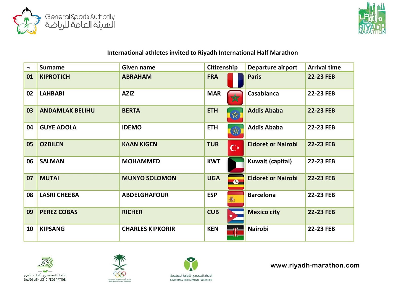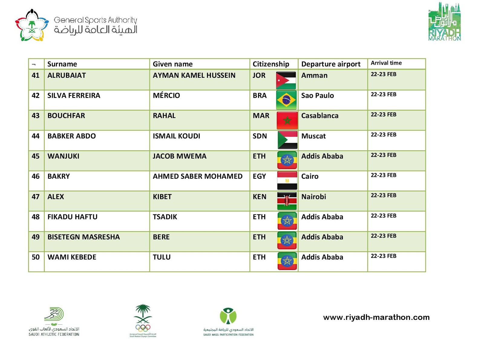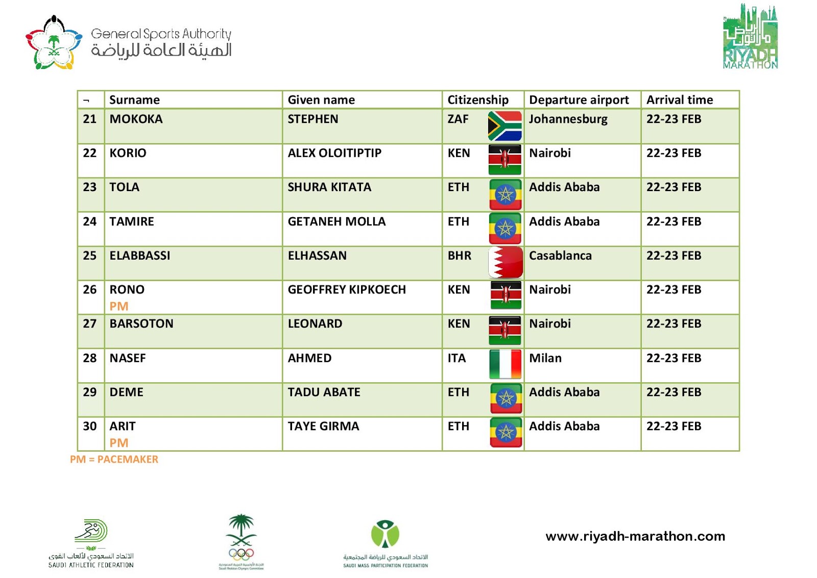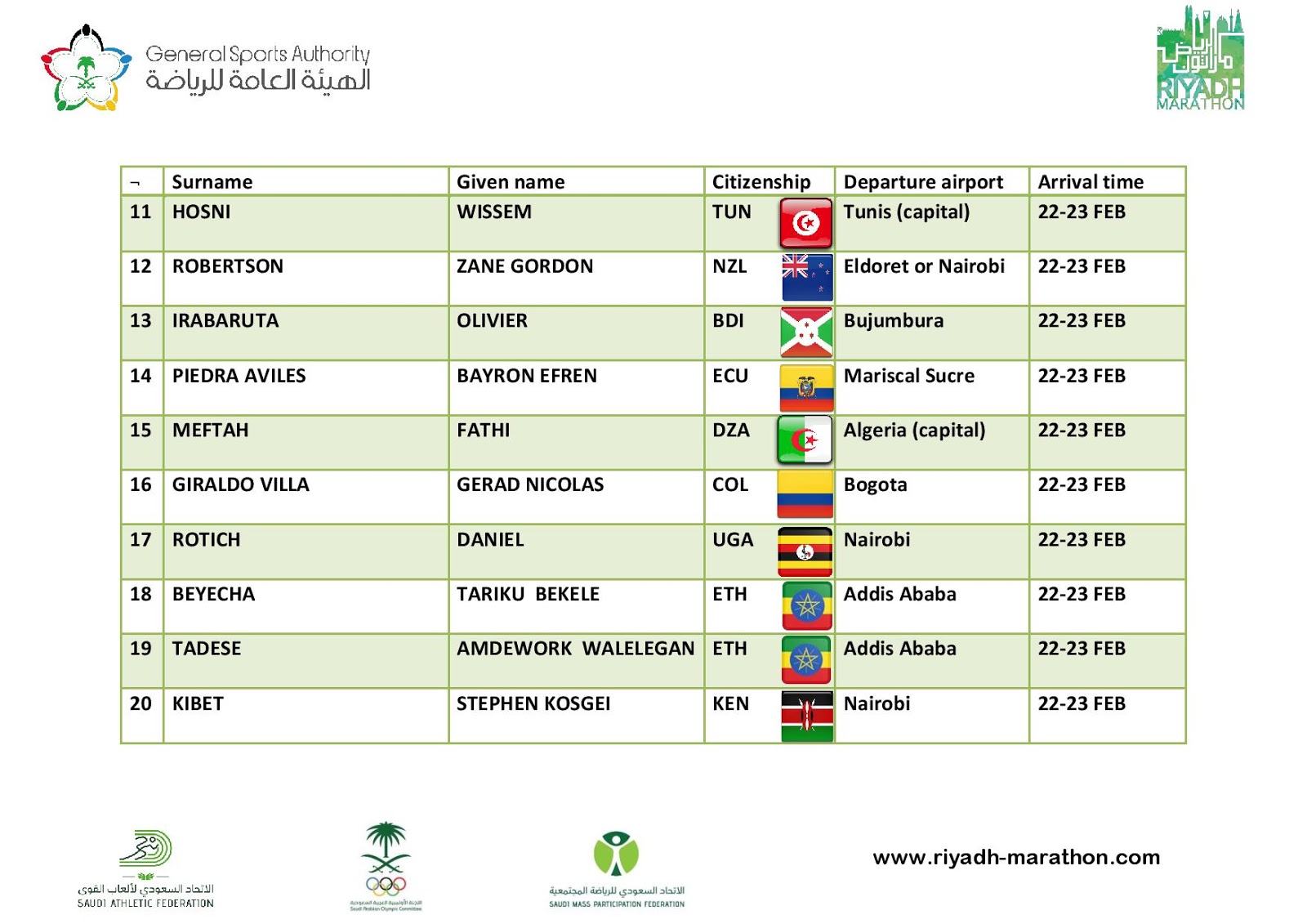 22 febbraio 2018 albertostretti RIYAD HALFMARATHON ON SATURDAY: ELITE FIELD RELEASED أبرز العدائين المشاركين في #ماراثون_الرياض_الدولي Un post condiviso da الهيئة العامة للرياضة (@gsaksa) in data: Feb 21, 2018 at 8:38 PST ELITE FIELD: Zane Robertson (NZL) will not start. COURSE:(race start at 9am local… 7am CET … 6am GMT) Condividi: Condividi su X (Si apre in una nuova finestra) X Condividi su Facebook (Si apre in una nuova finestra) Facebook Condividi su Telegram (Si apre in una nuova finestra) Telegram Condividi su WhatsApp (Si apre in una nuova finestra) WhatsApp Condividi su LinkedIn (Si apre in una nuova finestra) LinkedIn Altro Invia un link a un amico via e-mail (Si apre in una nuova finestra) E-mail
