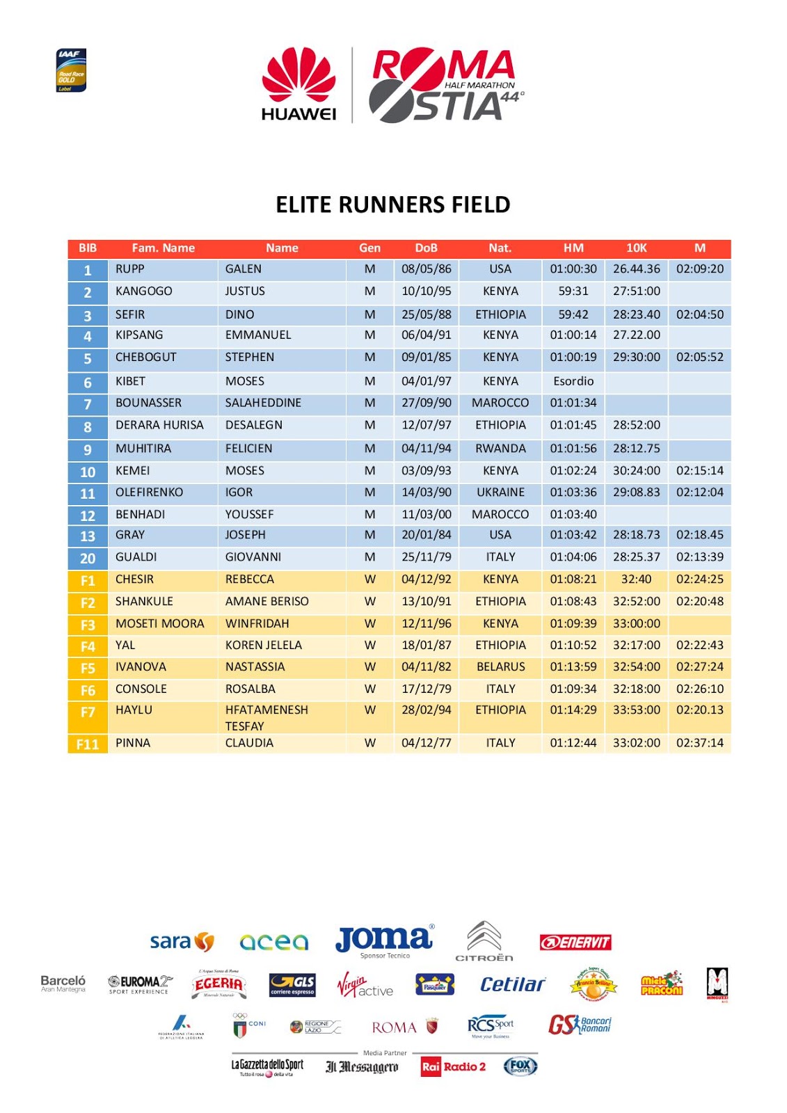 Huawei Roma-Ostia Half Marathon presents a five starts elite field for a memorable 2018 edition !