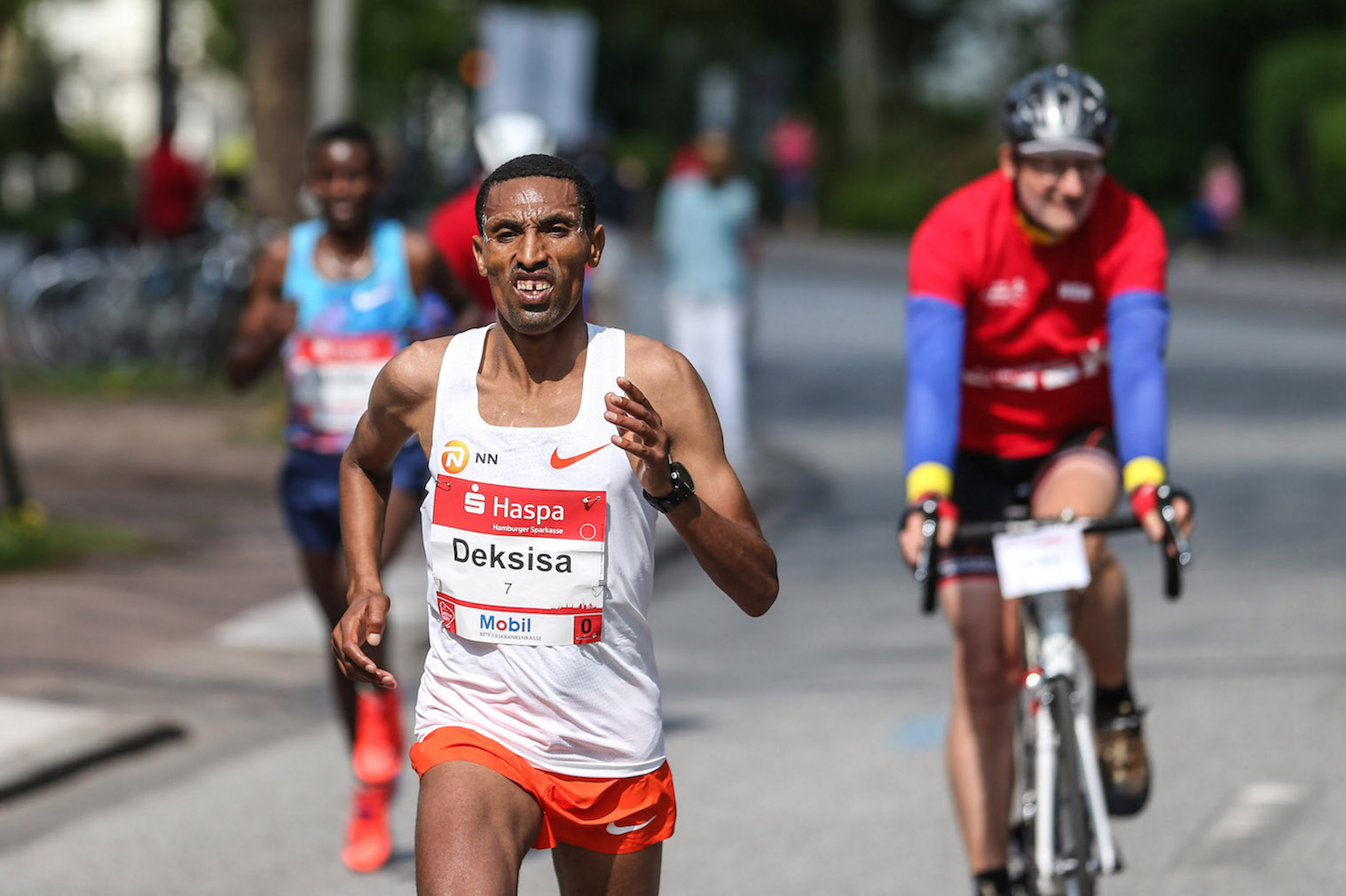 The 27-year-old Shitaye Eshete ran a personal best of 2:24:51. Her husband, Shumi Dechasa, who also runs for Bahrain, might also have been a contender for honours but the 2014 Haspa Marathon Hamburg champion developed an injury. “Shumi started having leg problems a few weeks ago which grew worse and that’s why he couldn’t come. He said to me: Go to Hamburg and win,” explained Shitaye, who arrived in Hamburg on the eve of the race on Saturday. She had been the last of the favourites to arrive but turned out to be first across the finish line.