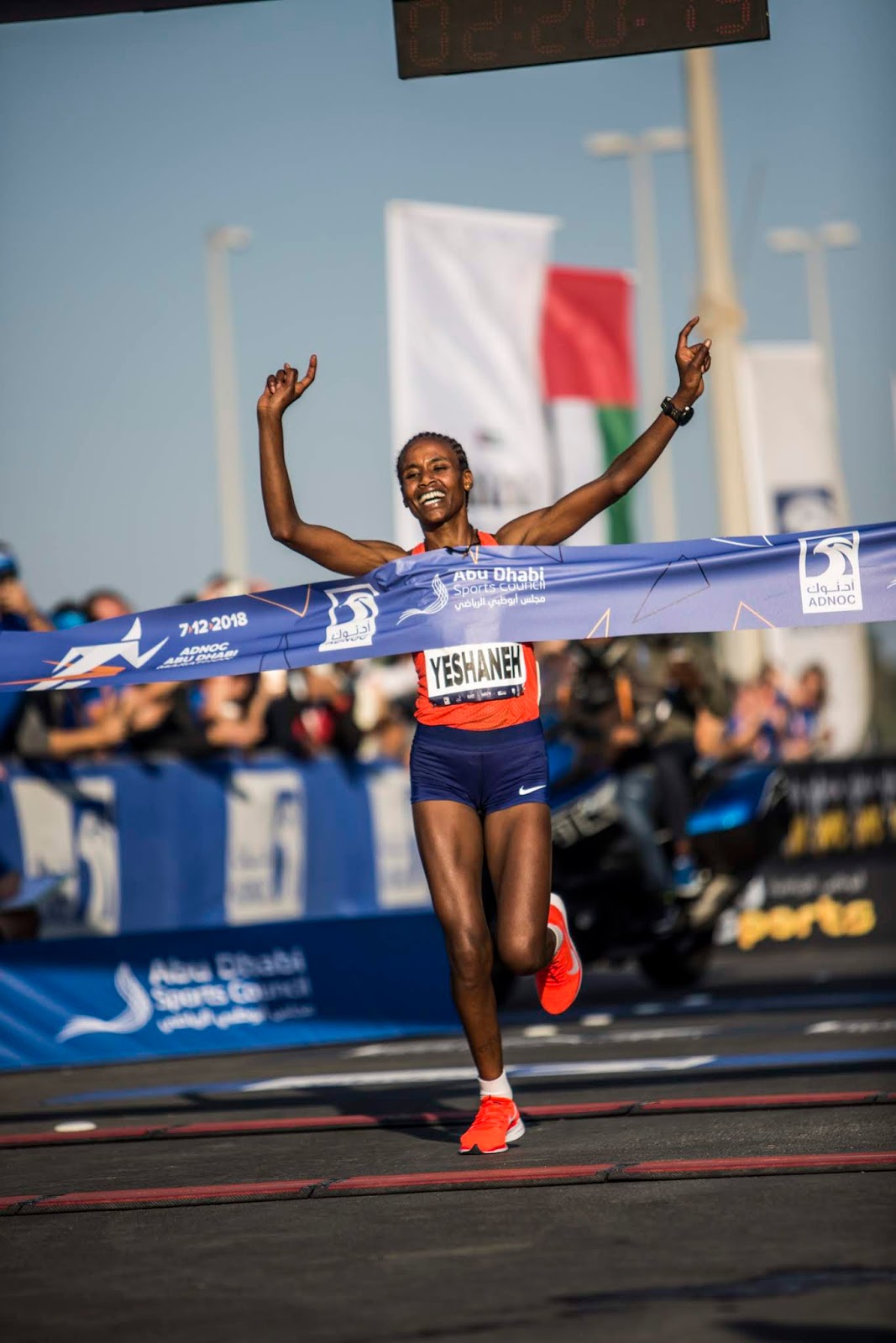 Ababel Yeshaneh expressed her delight in winning the ADNOC Abu Dhabi Marathon: “I’m pleased with my result and personal best performance. It’s my first time in Abu Dhabi and I was very happy with the route of the marathon.”