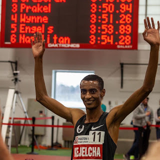 It was only a month ago when Ethiopia’s rising star Yomif Kejelcha missed the World Record on the Indoor 1-Mile by 0,01 seconds. Yesterday Yomif went after the record again at the Bruce Lehane Invitational in Boston, USA and finally got what he was after. With a time of 3:47.01 he set the new World Record and was 1,44 seconds faster than the previously record held by Hicham El Guerrouj since 1997.