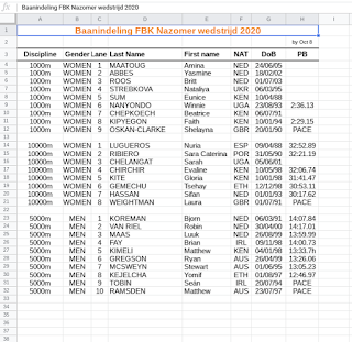 9 ottobre 2020 albertostretti MEETING HENGELO TOMORROW: LIVESTREAMING AND STARTLISTS LIVESTREAMING: STARTLISTS: TIMETABLE: (subject to change due to weather) 4.36pm CET 1000m women 4.45pm CET 5000m men 5.05pm CET 10000m women PS: I will update post with splits requested. Come back tomorrow morning to check!! Condividi: Condividi su X (Si apre in una nuova finestra) X Condividi su Facebook (Si apre in una nuova finestra) Facebook Condividi su Telegram (Si apre in una nuova finestra) Telegram Condividi su WhatsApp (Si apre in una nuova finestra) WhatsApp Condividi su LinkedIn (Si apre in una nuova finestra) LinkedIn Altro Invia un link a un amico via e-mail (Si apre in una nuova finestra) E-mail