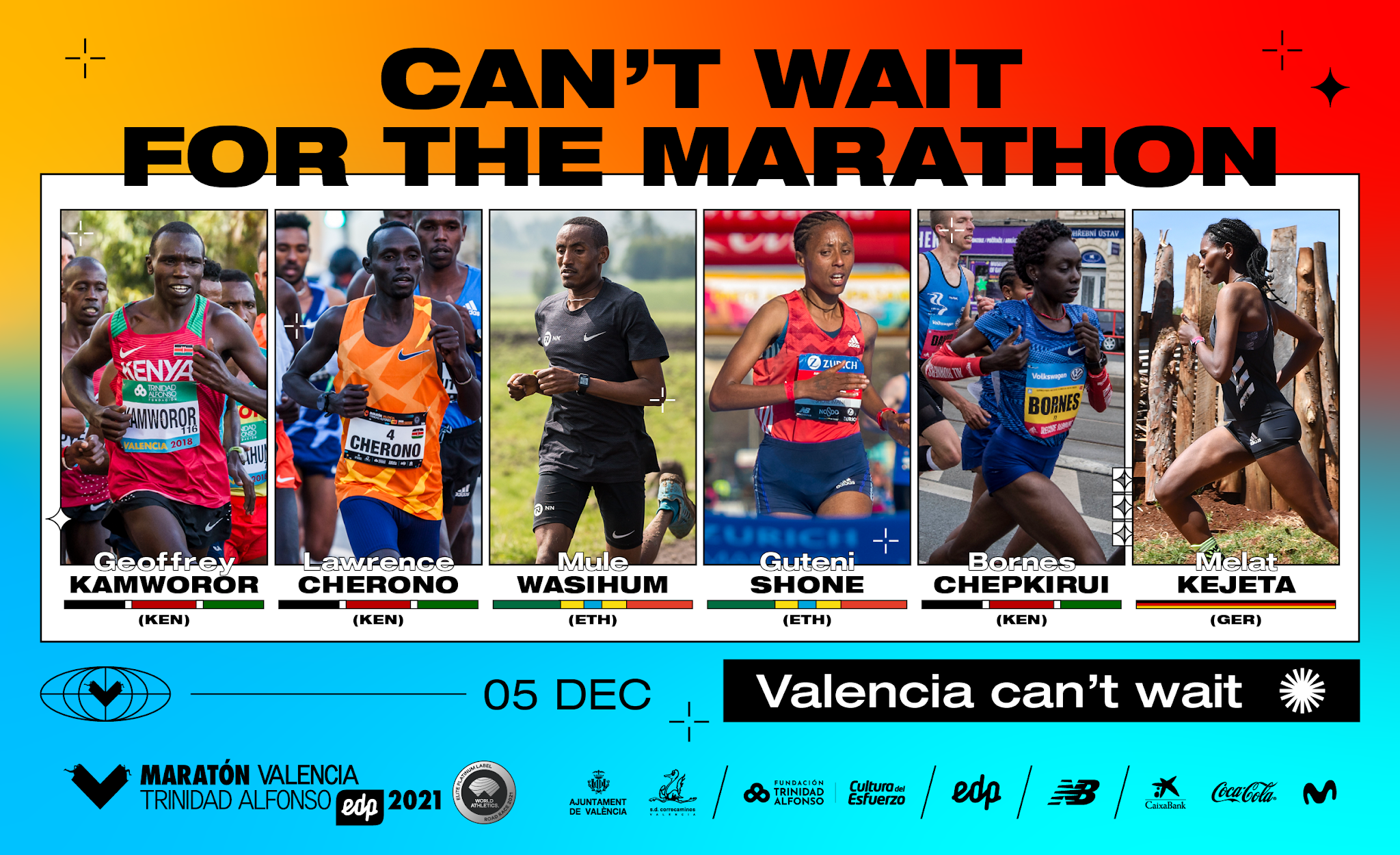 València, 6th October 2021.- Valencia will once again become the epicentre of the running world when it holds the 41st Valencia Marathon Trinidad Alfonso EDP, a race that in 2021 wants to continue making history by going under the course record (2:03:00, fourth world’s best time) and getting closer to the longed-for world record in the men’s category and by becoming the best women’s race of the year.
