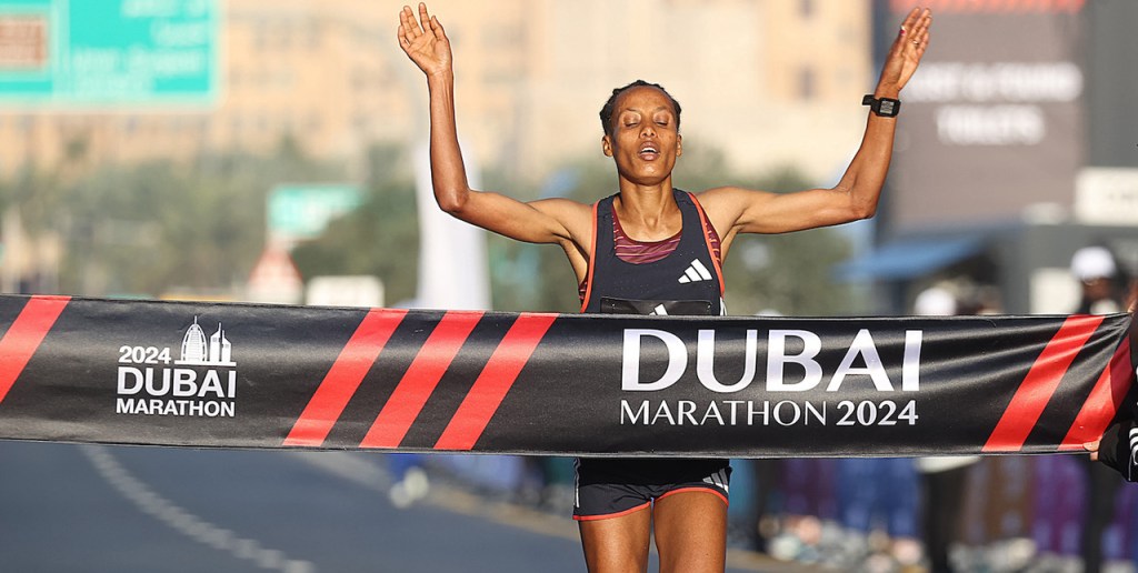 Running on Dubai’s renowned super flat course that mainly stretches on Jumeirah Beach Road, the 25-year-old Ethiopian marked her first-ever marathon by becoming the eighth fastest woman in marathon history. She also smashed the Dubai course record, improving the mark by 61 seconds.