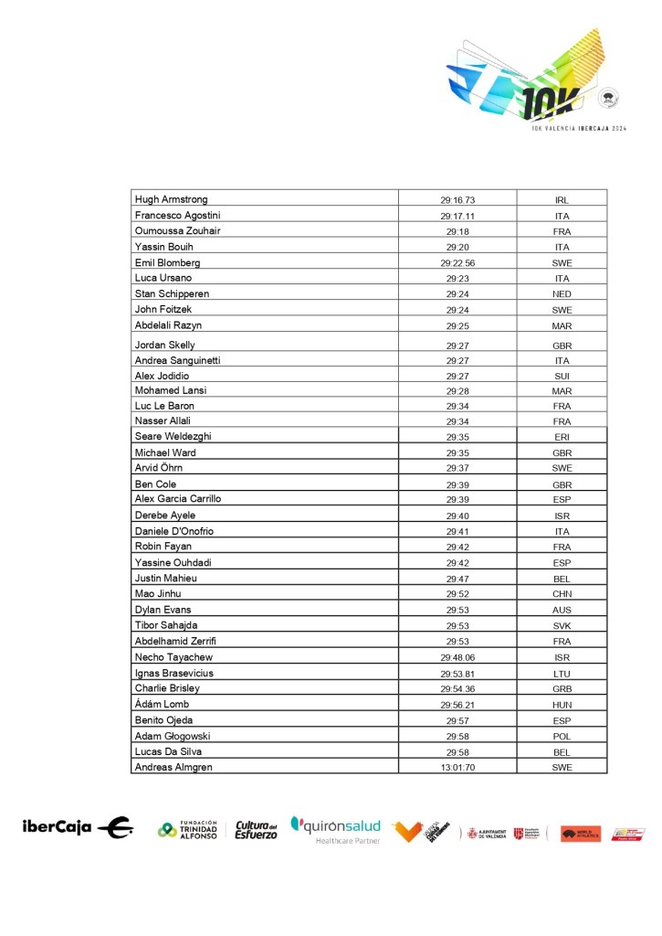 10 gennaio 2024 albertostretti COMPLETE ELITE FIELD AND LIVESTREAMING 10kValencia ELITE FIELD: MAP COURSE: Elite start at 9.30 am CET LIVESTREAMING will be HERE Condividi: Condividi su X (Si apre in una nuova finestra) X Condividi su Facebook (Si apre in una nuova finestra) Facebook Condividi su Telegram (Si apre in una nuova finestra) Telegram Condividi su WhatsApp (Si apre in una nuova finestra) WhatsApp Condividi su LinkedIn (Si apre in una nuova finestra) LinkedIn Altro Invia un link a un amico via e-mail (Si apre in una nuova finestra) E-mail
