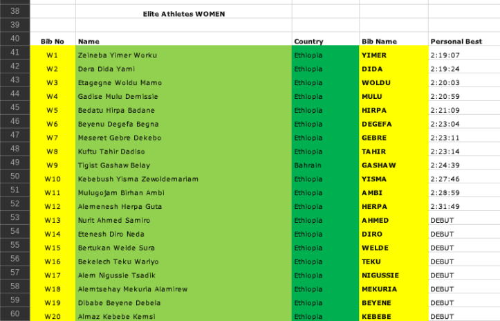 In the past, the men’s race has seen victories for the likes of Desisa, reigning Olympic Champion Tamirat Tola and course record holder Getaneh Molla (2:03:34), while last year’s women’s race witnessed a new course record from Tigist Ketema (2:16:07), a record time for a woman making her marathon debut.